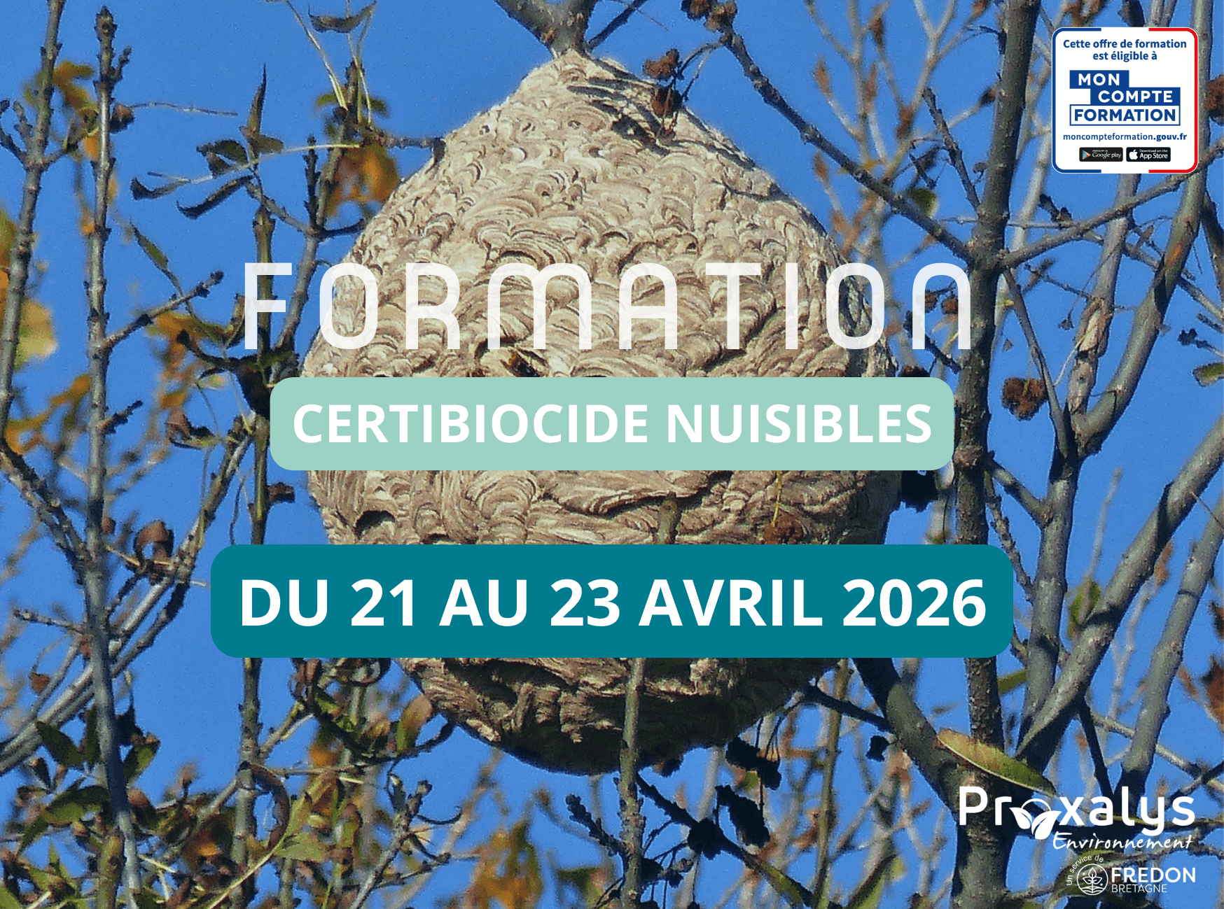 Formation Certibiocide « Nuisibles » 17 mars au 19 mars PROXALYS Environnement 5 rue Antoine de Saint-Exupéry, Thorigné-Fouillard, France En savoir +